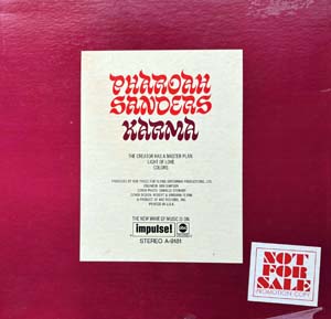 2080. PHAROAH SANDERS: “Village of the Pharoahs” (Impulse – AS9254) (Record: Near Mint/ Gatefold Jacket: Excellent/ Company Inner Sleeve: Bear Mint) WHITE label PROMO issue, first press US original in outstanding condition. US Promo issue does not surface all that often. Price: 250 Euro |
