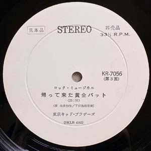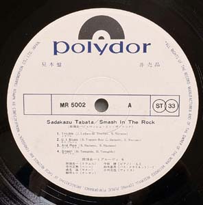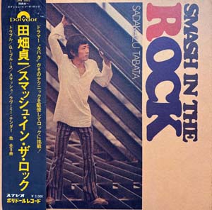 2259. SADAKAZU TABATA: “Smash in The Rock” (Polydor – MR-5002) (Record: Near Mint/ Gatefold jacket: Near Mint/ 4 Page Insert: Near Mint/ Obi: VG++ has some wrinkles). Monster rare heavy Japanese psychedelic blues and jazz rock skull fucker as released in 1971 rock original in TOP condition and all complete with deliriously rare OBI! Rarely seen WHITE label PROMO issue!!!! Heavy Japanese rock trip/ guitar & organ burner in the vein of Food Brain/ Flied Egg that sludges into the psych into prog/ jazz rock behemoth. The line-up consists out of seasoned veteran heavy players such as Tabata Sadakazu (drums); Terakawa Masaoki (bass, Count Buffalos; Love Live Life/ Beat Generation, etc); Narumo Shigeru (guitar/ Flied Egg, Strawberry Path); Yanagida Hiro (organ – Apryl Fool; Food Brain; Love Live Life, Shinki Chen, Sons of Sun); Imada Masaru (piano – Tee & Company; Ishikawa Akira & Count Buffalos); Suzuki Shigeru (bass, cl – Happy End) and Kobayashi Katsuya (voice). One of the still largely undetected monster and one of the cornerstones of the Japanese underground. Narumo Shigeru on heavy guitar, Yanagida torturing the keys, a pounding rhythm section, etc…. Awesome jammer with swirling organ, massive fuzz assaults. All time classic in my book but sadly insanely rare. Know of only a handful of copies in hands of a few lucky collectors here in Japan, never public for sale in a list or in any of the Pokora books. All complete with obi and in Top condition. Next to Ceremony/ Speed Glue & Shinki/ Shinki Chen/ Zipcode etc. …. One of the rarest rock albums from Japan. Impossible in this condition and all complete with obi and insert. Hit me hard!!! Price: Offers!!!! |