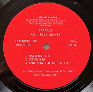372. The BYRON ALLEN TRIO: “S/T” (ESP Disk – 1005) (Record: Near Mint/ Past on Wrap Around Jacket: Near Mint). Original US MONO pressing as released in 1965. The Byron Allen Trio was among the first batch of ESP-Disk' jazz LPs. Recorded on the afternoon of September 25, 1964, at Mirasound Studio in midtown Manhattan, it was Allen's debut. He had been recommended to ESP-Disk' by Ornette Coleman, and one of the tracks, "Decision for the Cole-Man," reflects this connection. Allen and his trio also play in a style somewhat similar to that of Coleman's trio of that era with bassist David Izenzon and drummer Charles Moffett, though that's not to say that Allen, bassist Maceo Gilchrist, and drummer Ted Robinson don't display a sound of their own on the four tracks here. In the years since, though Allen made only one other album (and that 15 years later), this LP acquired legendary stature among jazz fanatics. Top copy. Price: 150 Euro |